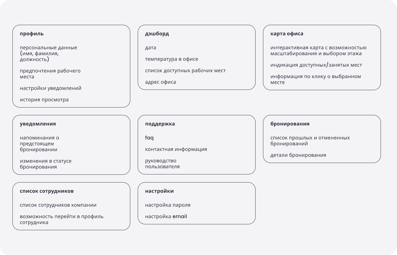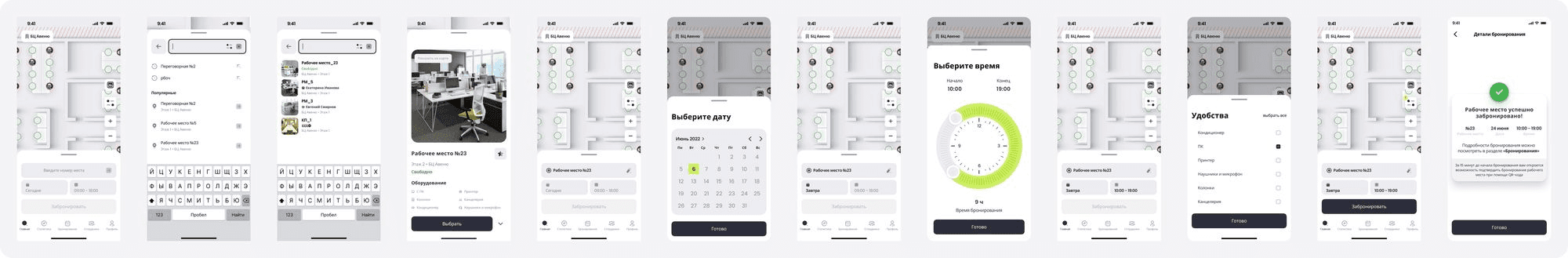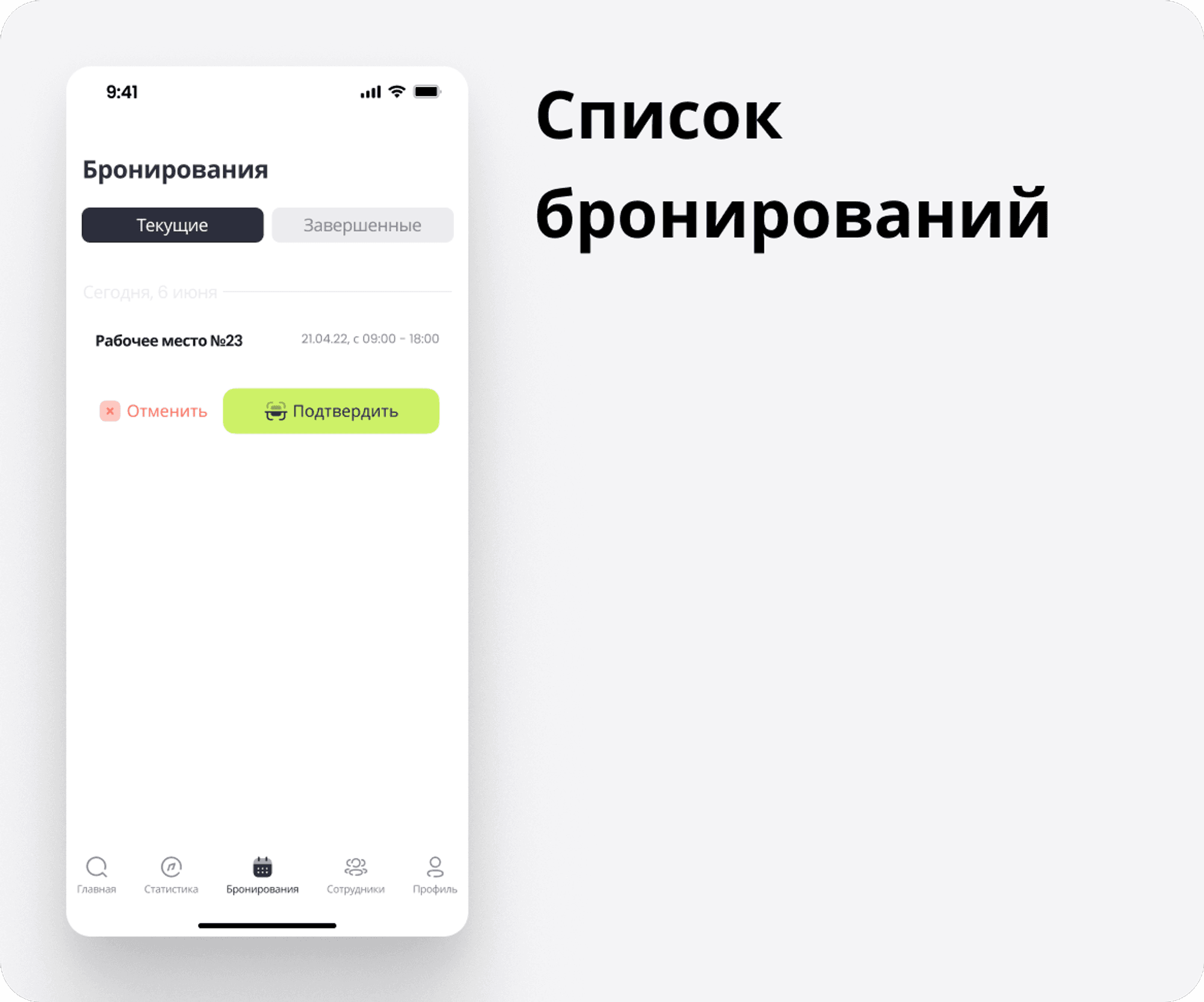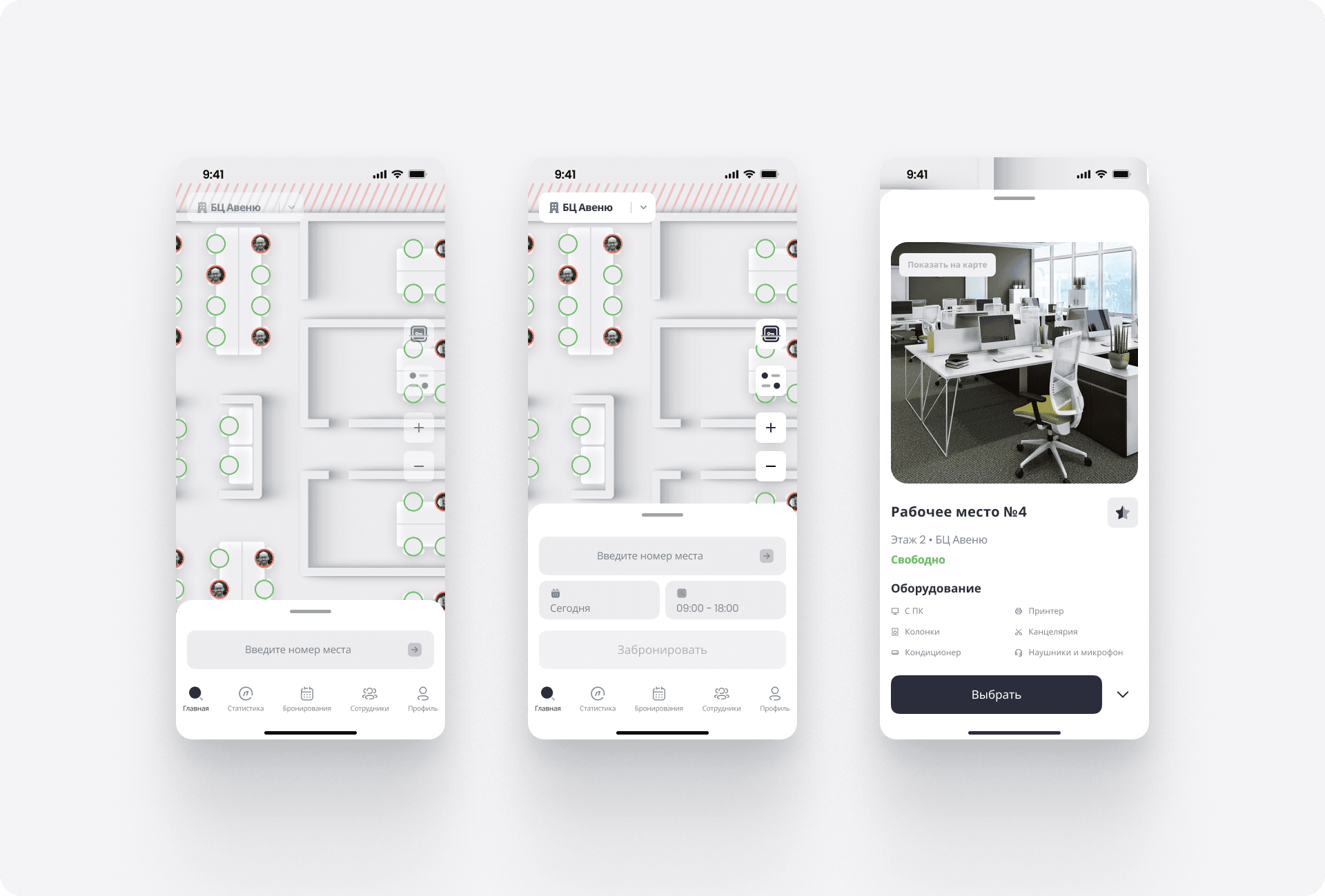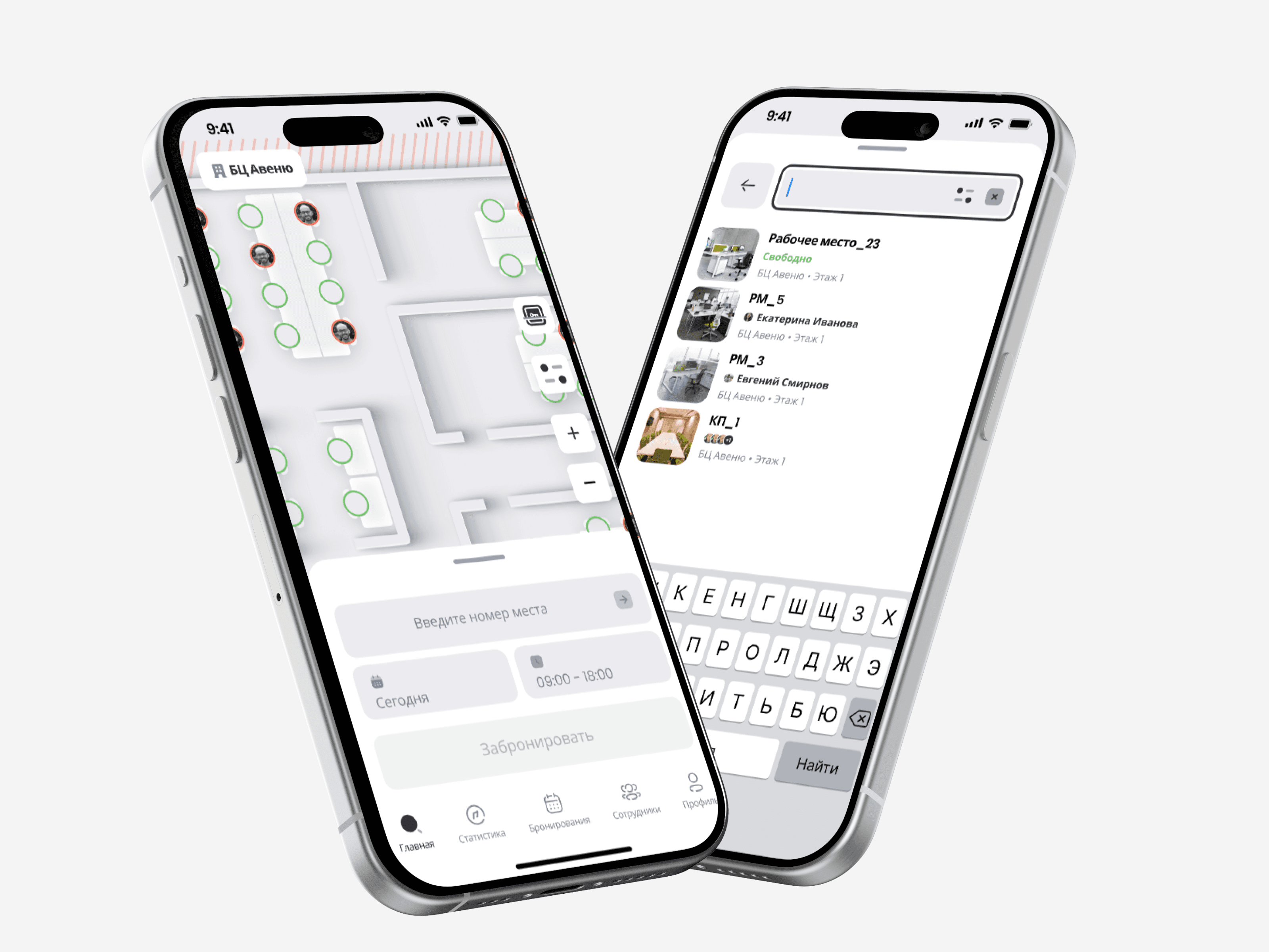 Система бронирования офисного пространства сотрудниками с гибким графиком работы (рабочие места, переговорные и т.д.).