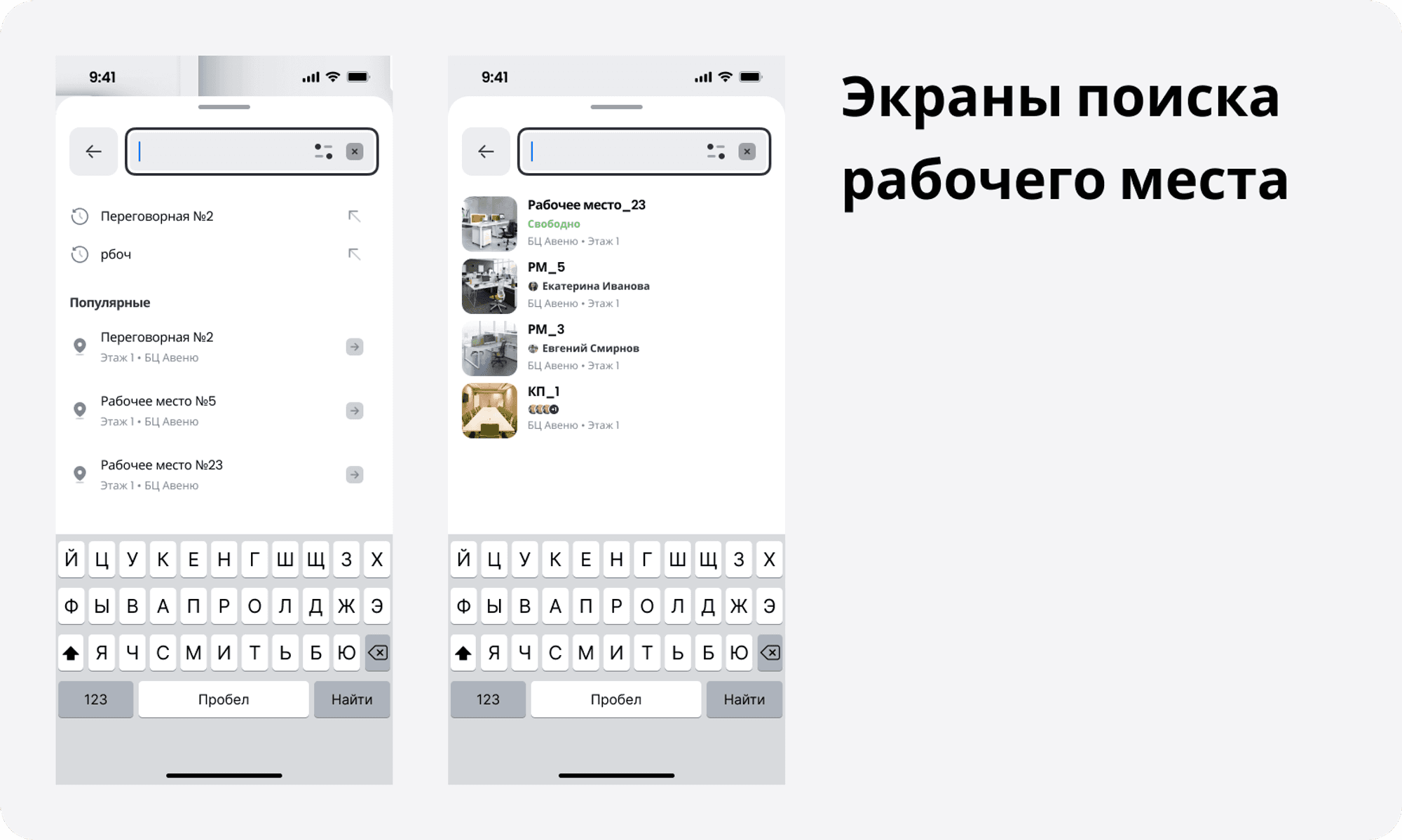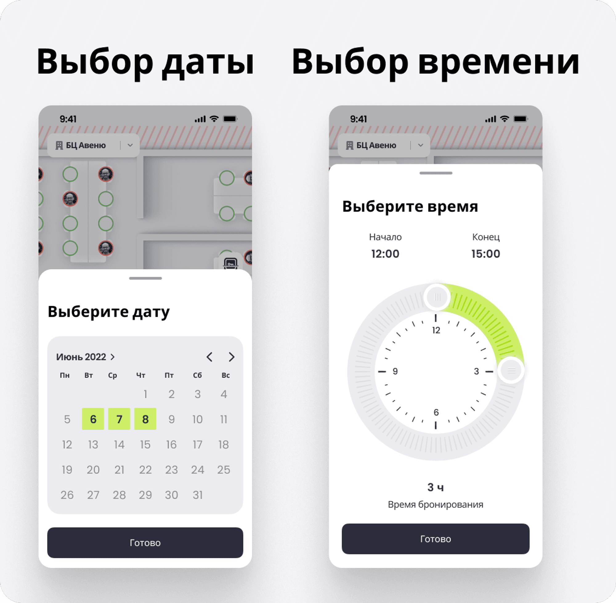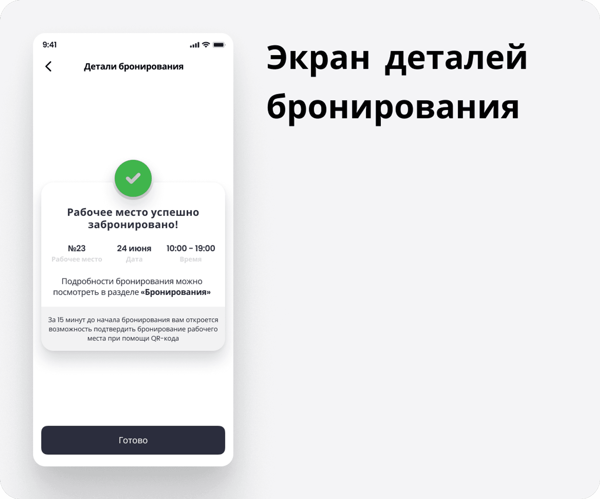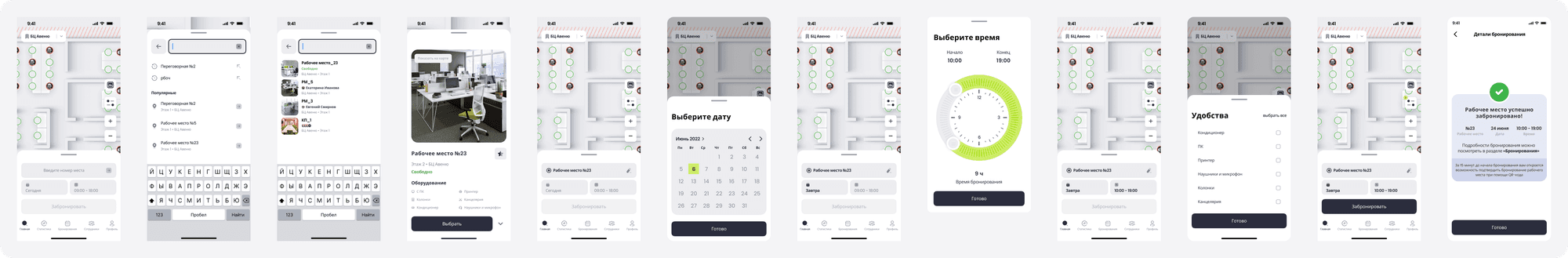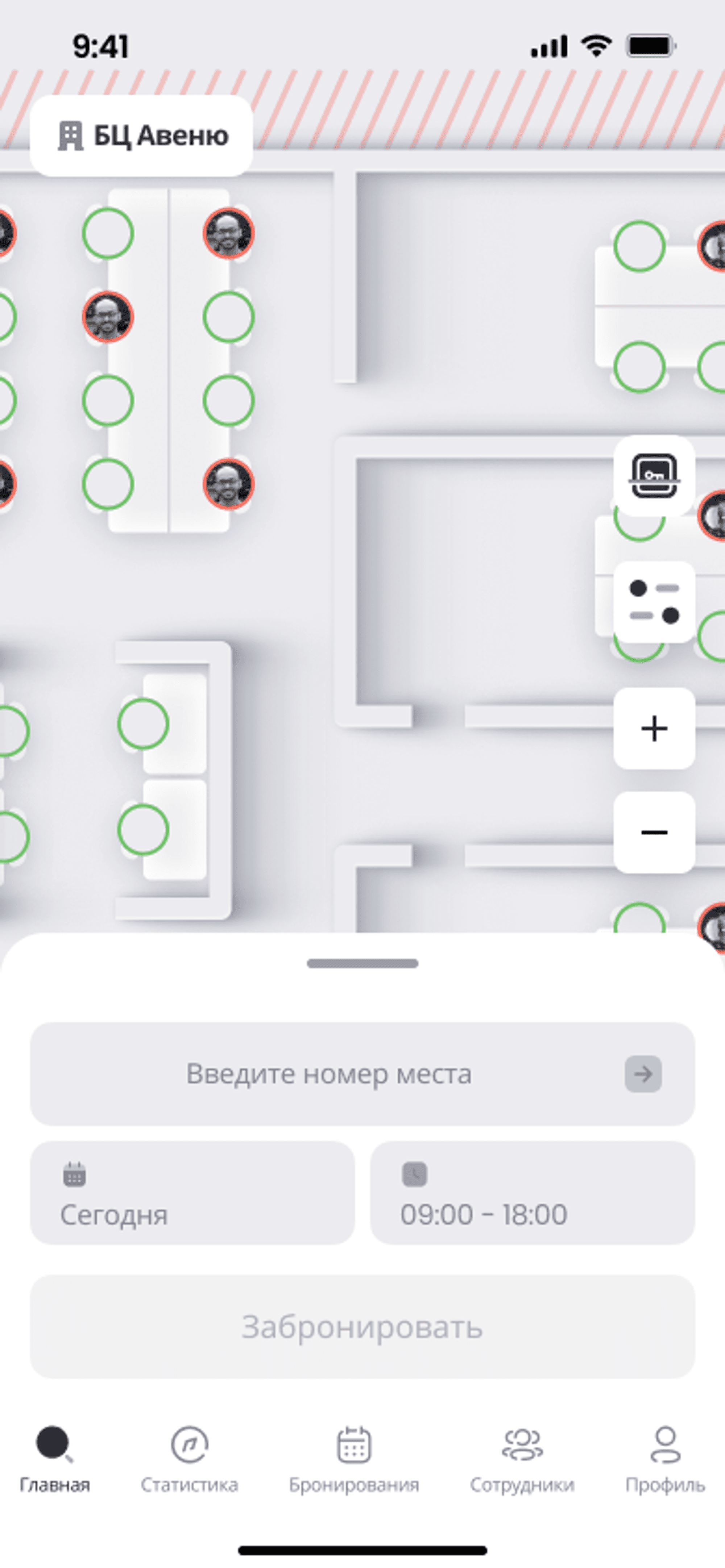 бронирование рабочих мест, переговорных комнат, парковок и др.;