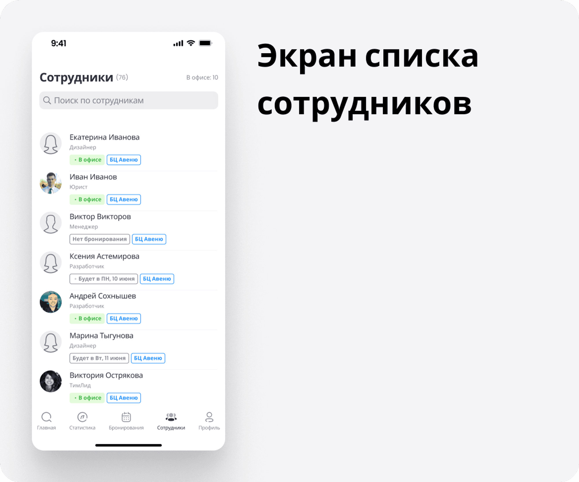 возможность комбинировать и размещать сотрудников рядом, в рамках одного стола / одной зоны (общие задачи, обучение и пр.);