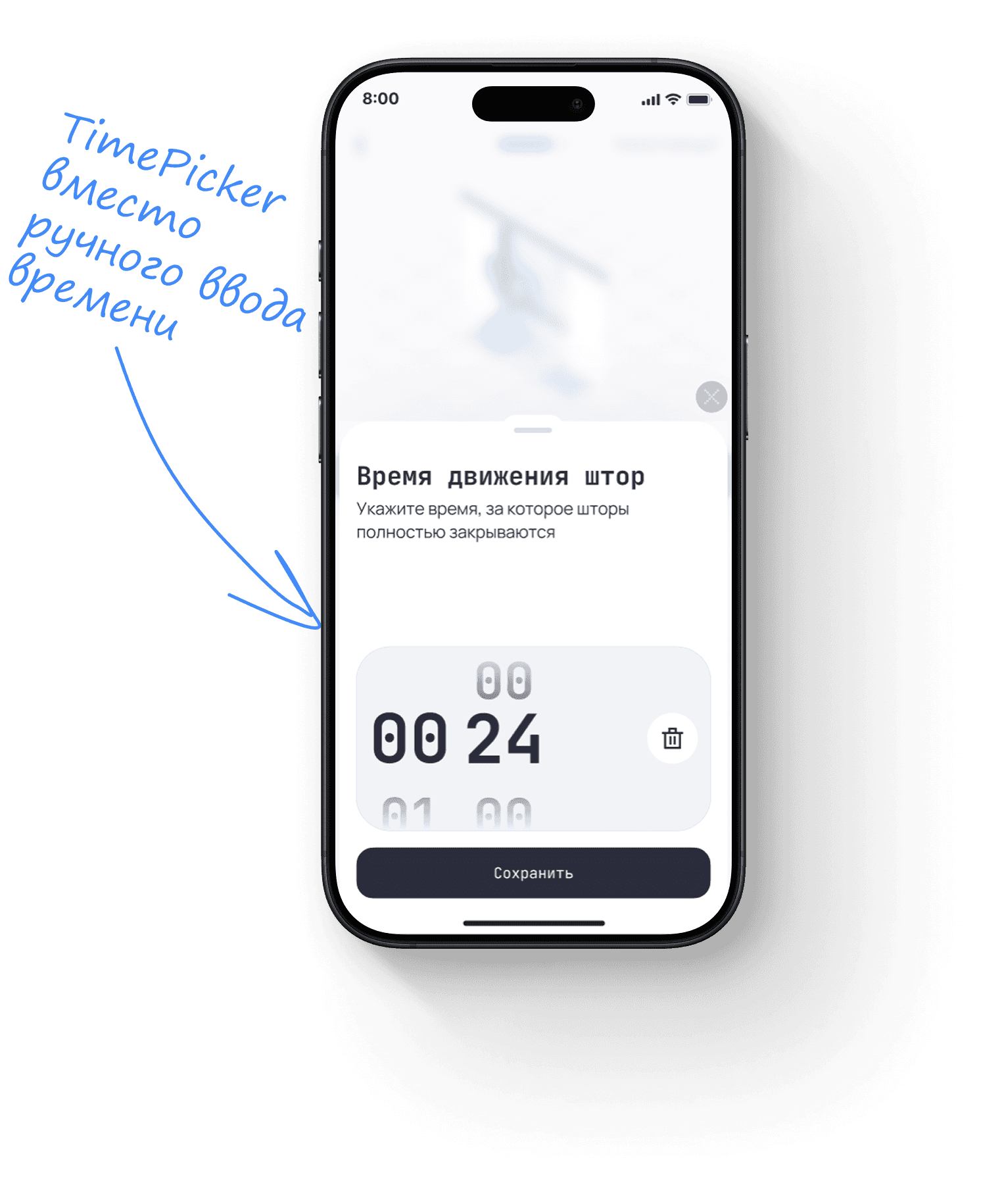 Было проведено два немодерируемых юзер теста. Оба респондента выполнили задание. Фактом выполнения задания считалось достижение экрана “09 - Управление шторами”. У одного респондента возникли затруднения на экране «07 — Время движения — Ввод», респондент не сразу нашёл инпут для ввода