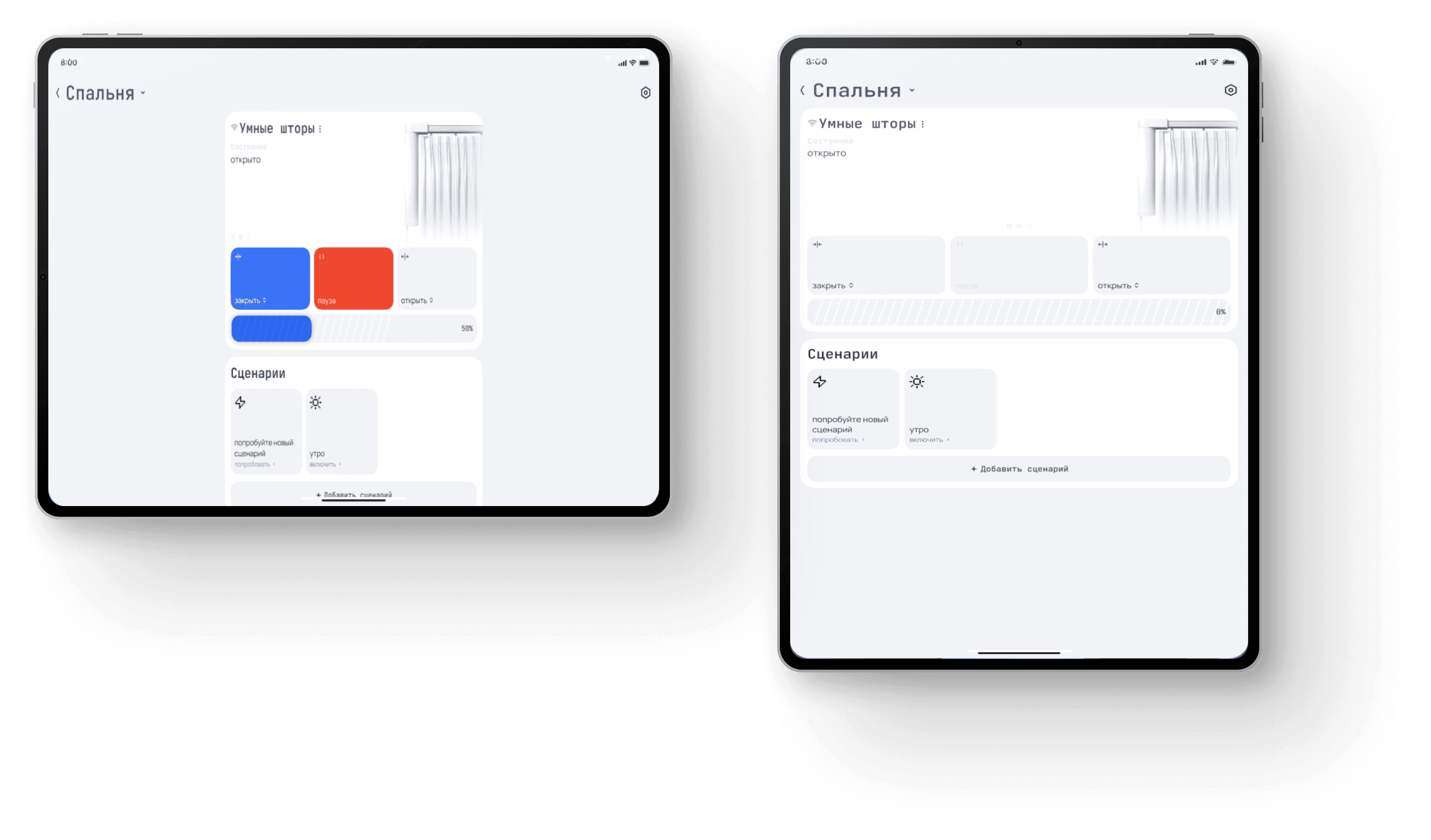 Также разработал версию экрана управления шторами для планшета, исключив процесс калибровки, поскольку большинство пользователей будут выполнять настройку с мобильного устройства