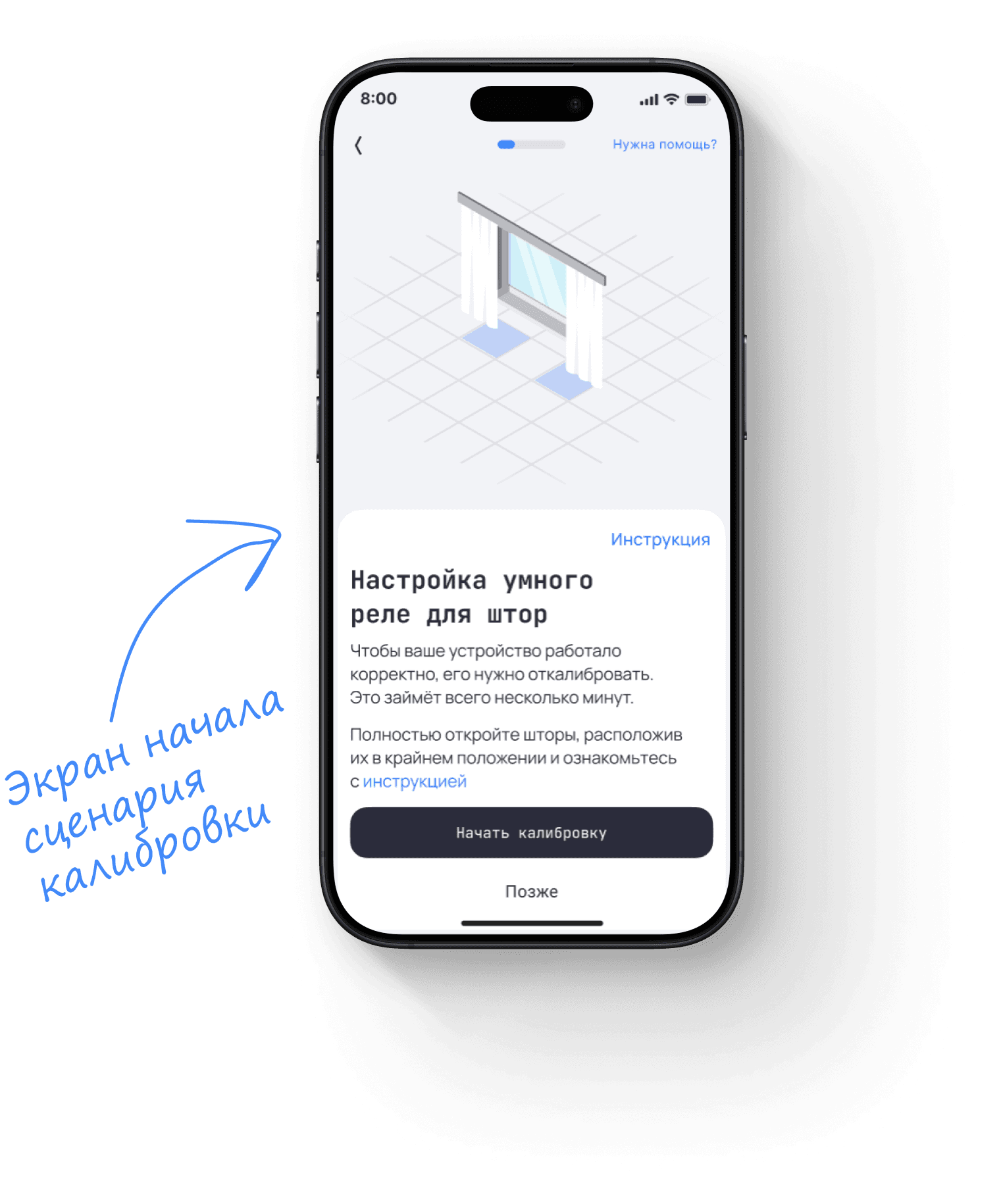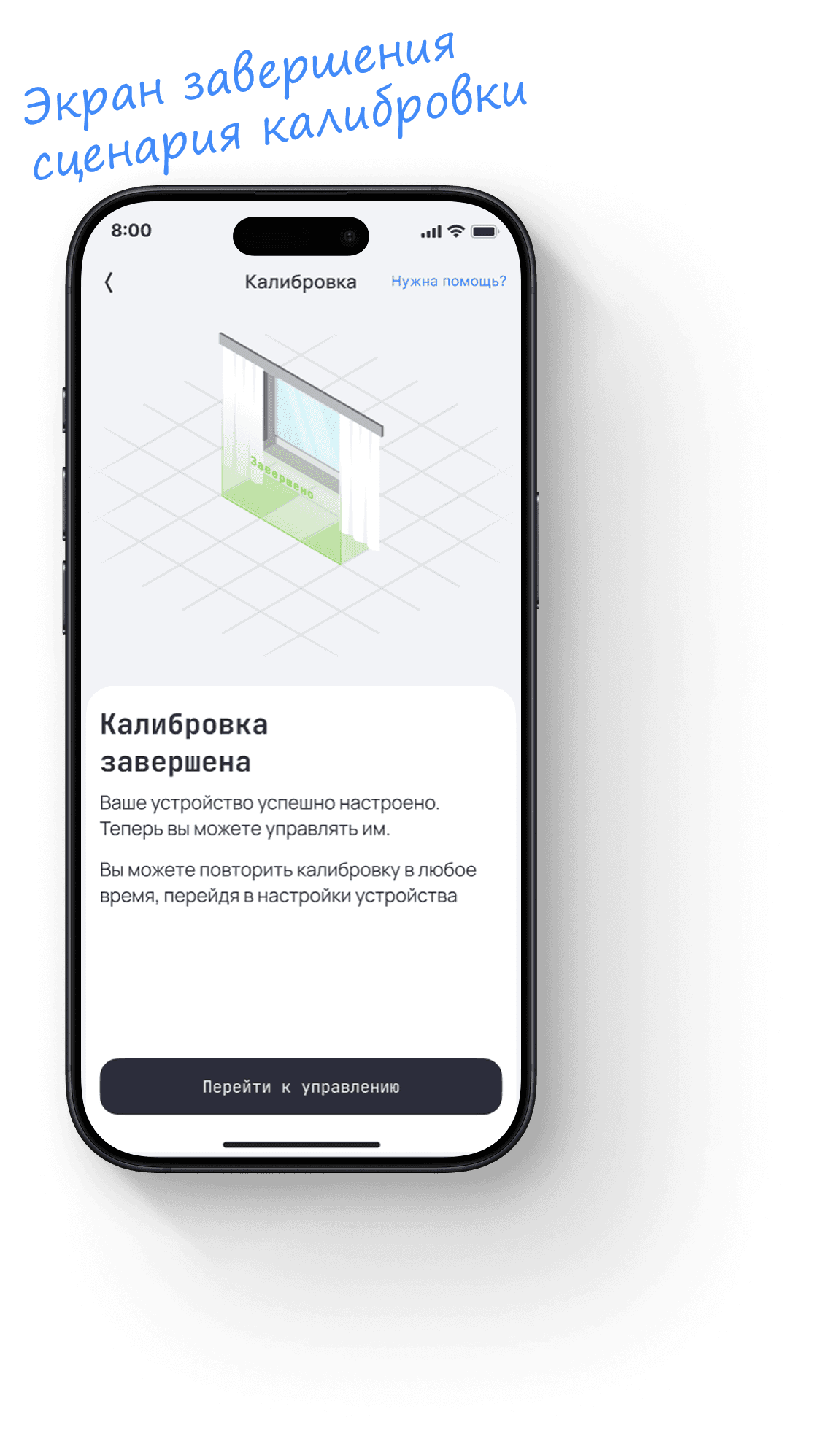 В приложении умного дома для того, чтобы начать управлять умным устройством его сначала нужно откалибровать.