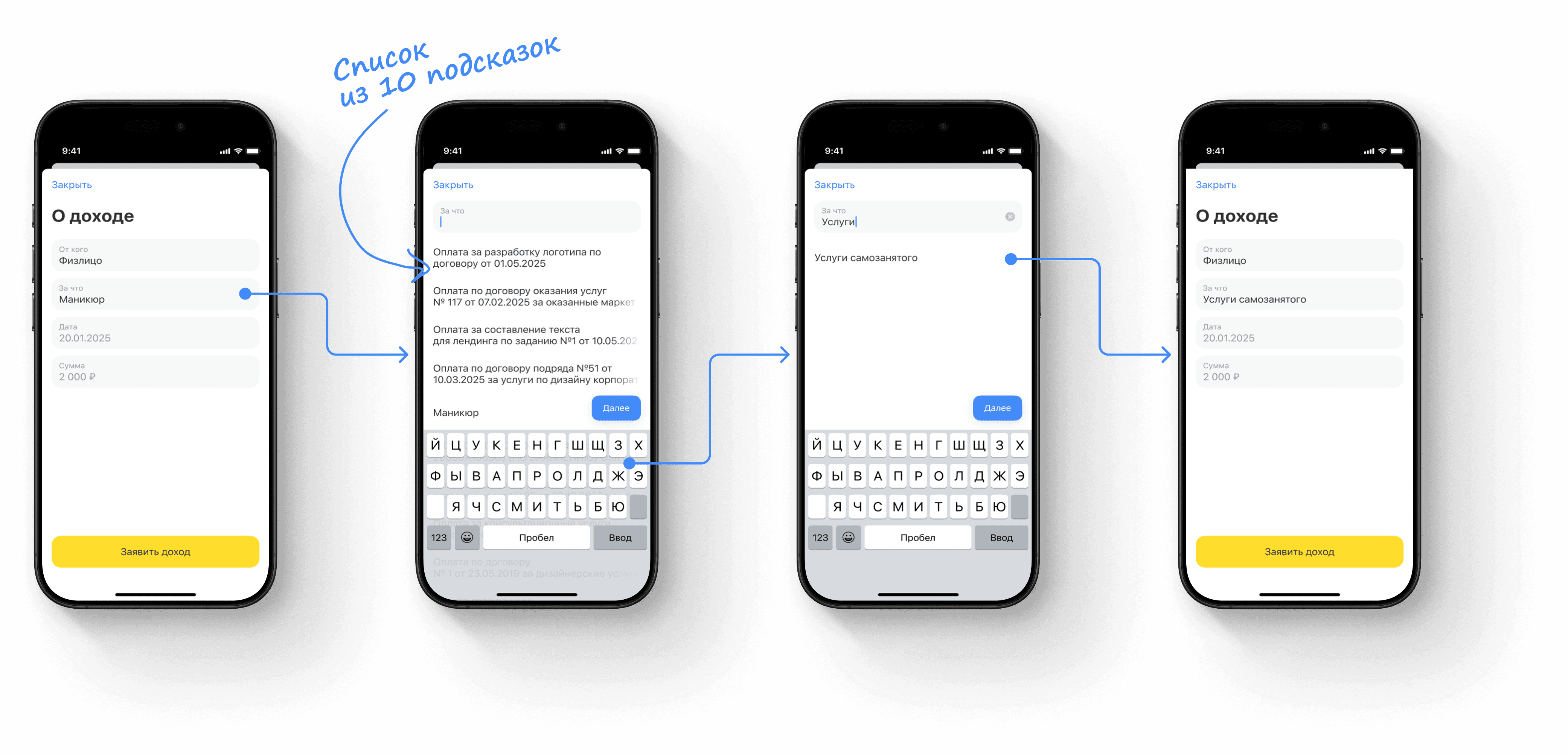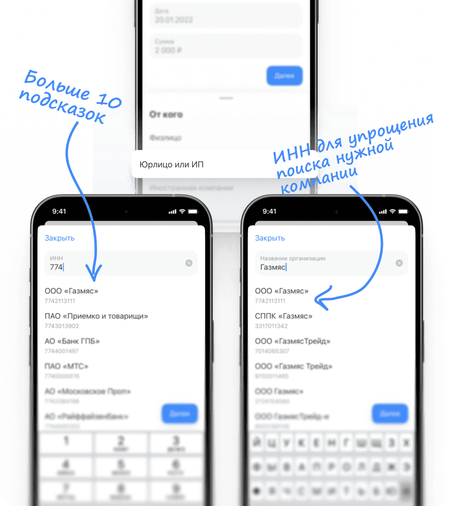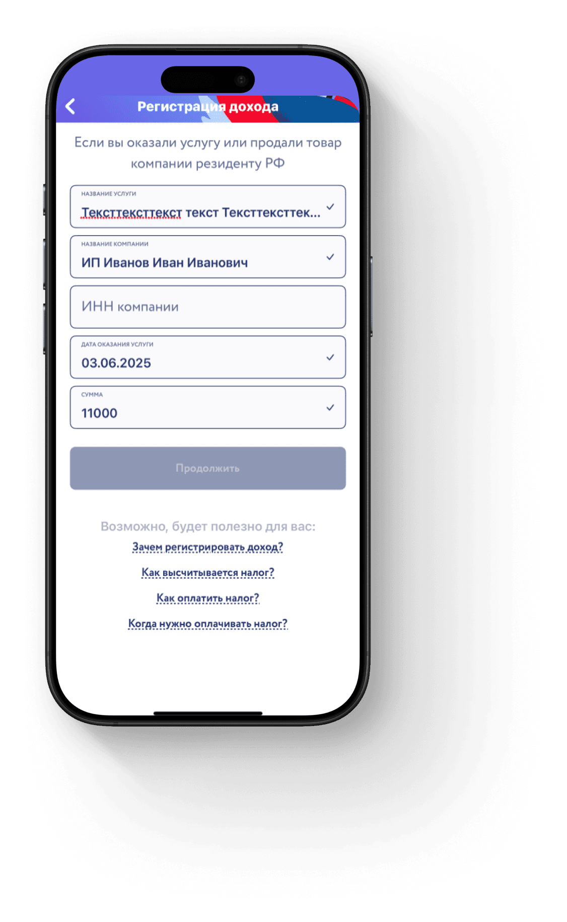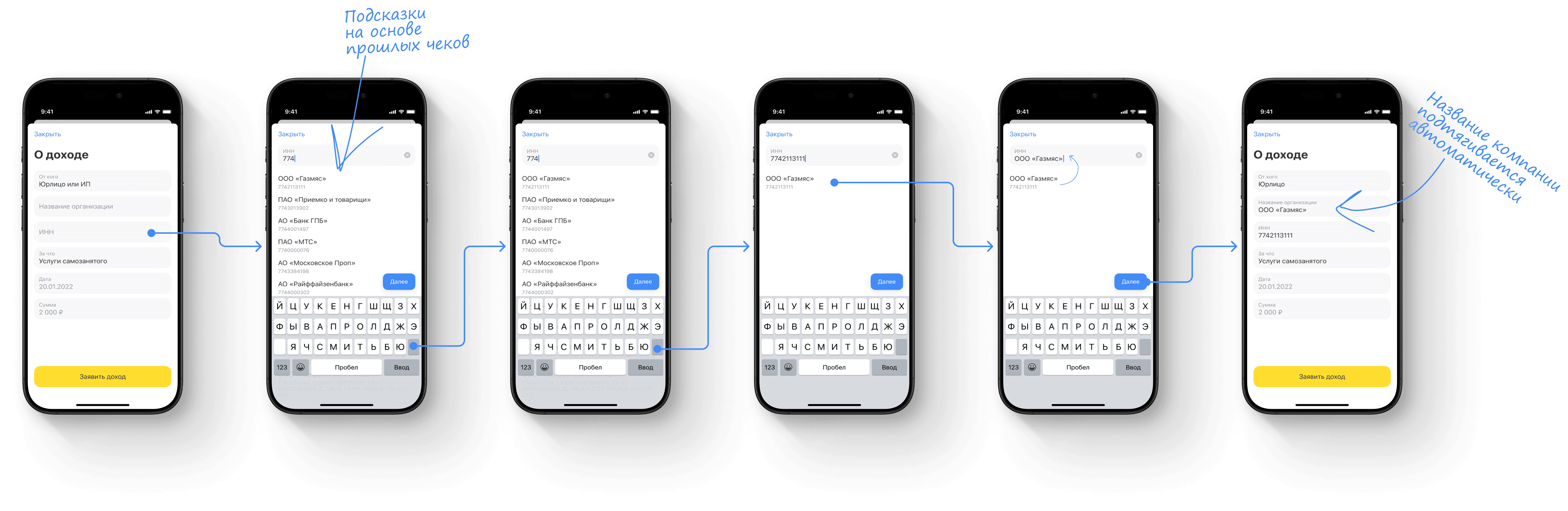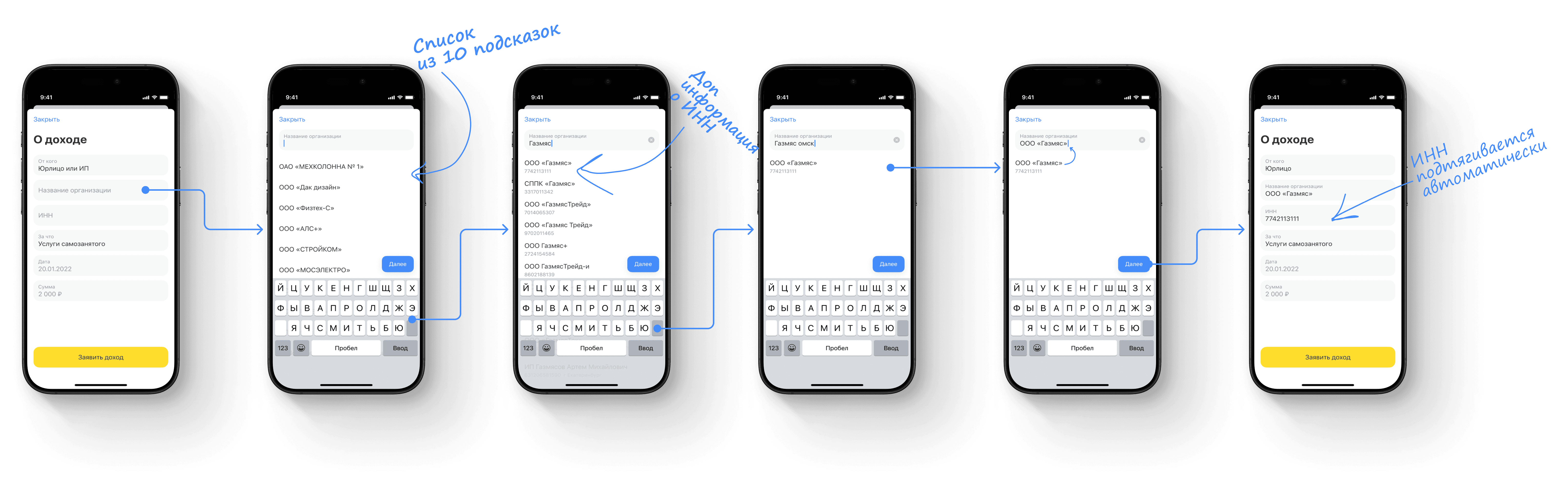 Улучшили подсказки при вводе названия компании и ИНН, при заявлении дохода от юрлица. Теперь предлагается 10 совпадений, также у каждой компании показывается ИНН, чтобы пользователю было проще найти нужную компанию